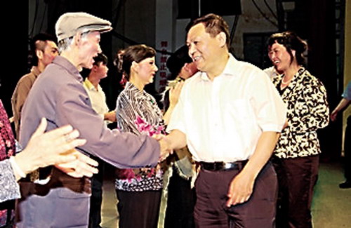 - 为庆祝中国共产党成立90周年,进一步掀起学习杨善洲先进事迹热潮,由州委宣传部、州委组织部牵头,州文体局、楚雄州民族艺术剧院组织编排的大型彝剧《杨善洲》经过近两个月的紧张排练,于6月26日晚在楚雄市东兴影剧院正式进行首场演出。 图为:州委书记张太原,州委副书记、代理州长李...