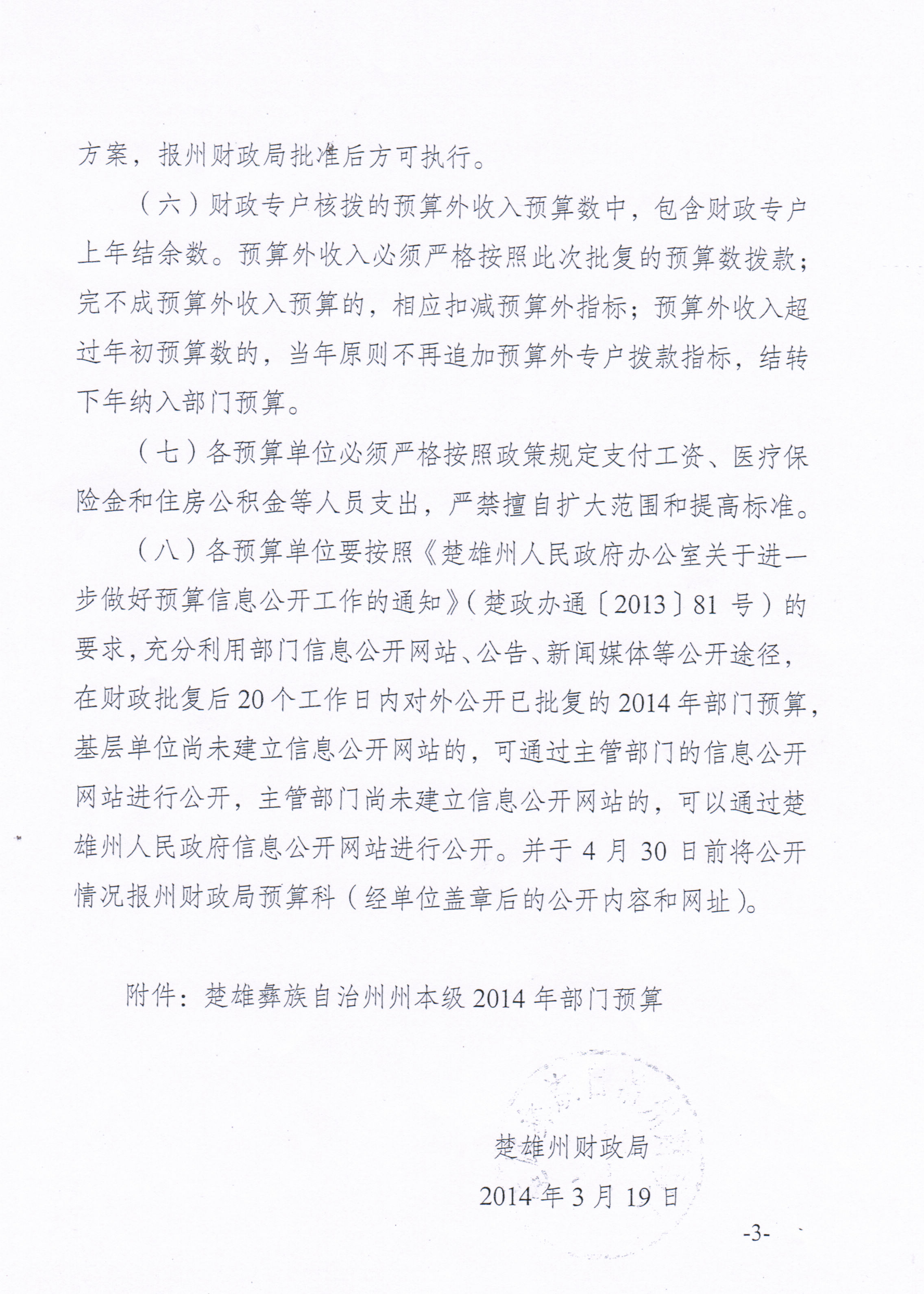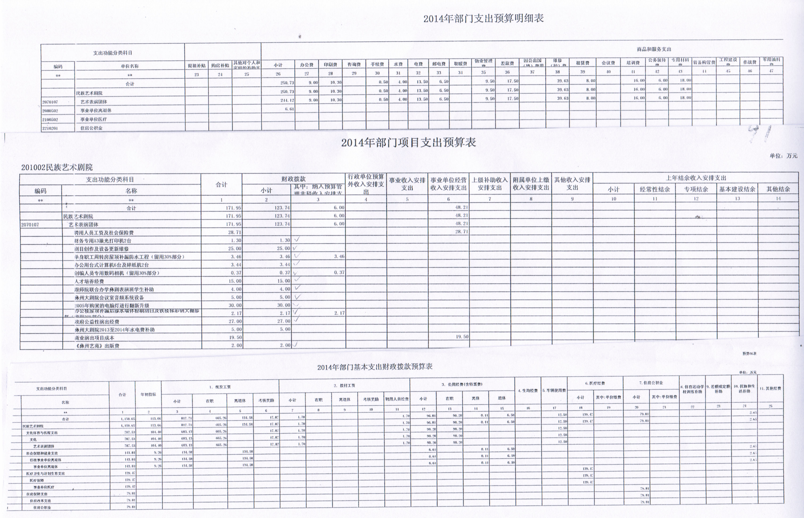 楚雄州财政局关于民族艺术剧院2014年部门预算批复通知