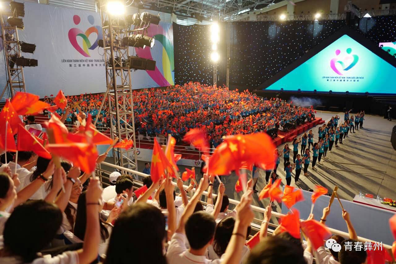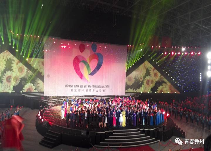 11月9日下午,在越南首都河内美亭体育馆内举行的第三届中越青年大联欢文艺晚会暨闭幕式,再次掀起了本届大联欢活动的高潮。在场外,越南青年用热烈的掌声迎接着中国青年,并用中文讲“你好”“欢迎”,心中那份莫名的感动与自豪便油然而生,更加深了内心那份爱国主义情怀。面对越南青年,又在这样一个大背景之下,中国青年们也纷纷用越南语回答“你好”和“谢谢”。场内的气氛就更加热烈,中越青年台上台下互动频繁,一边跟随音乐挥动两国国旗,一边呼喊:“一二三,我爱你!”,并用竹条共打节奏,还纷纷合影留念。中越两国歌手共同演唱《越南—中国》《明天会更好》等歌曲,更加点燃了现场火爆气氛。当主题曲《山连山水连水》响起时,中越双方青年纷纷离座挥旗回应,我的眼里饱含激动的泪水,脑海中浮现出祖国的青山绿水,思念万分。青春相约,友谊相伴,连续三届的青年大联欢活动在热烈的气氛中正式落下帷幕。