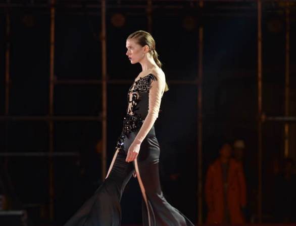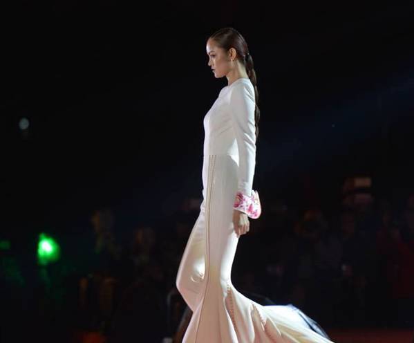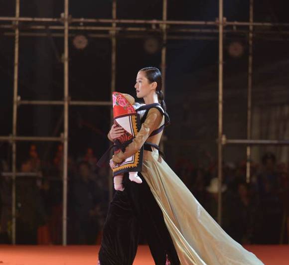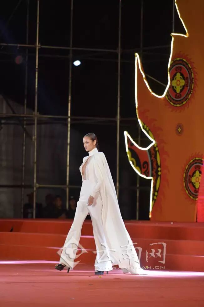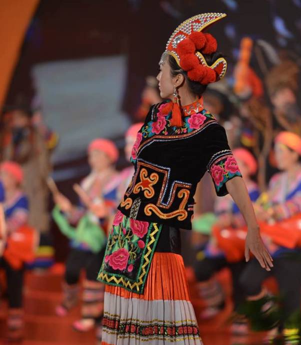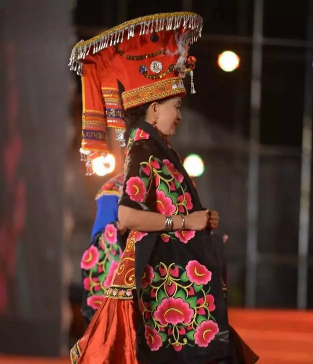 随后,另一场视觉盛宴接踵而至,以“七彩云裳,世界共享”为主题的专业模特走秀仿佛把现场变为了时尚最前沿的巴黎时装周。传统的彝族符号和象征时尚的定制服装融合在一起,马艳丽楚雄彝族特色时装展演把晚会推向了高潮。