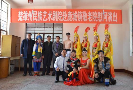 为把“学雷锋志愿服务”活动引向深入,3月17日下午,我院组织共青团志愿服务队,到楚雄市鹿城镇敬老院为老人们献上了一场专场慰问演出。舞蹈《花儿为什么这样红》,歌曲《开开心心快快乐乐》、小彝剧《祭鸡》,独舞《水墨孤鹤》,四弦独奏《彝家乐》等精彩的节目,赢得了老人们阵阵的掌声,鹿城敬老院里欢声笑语、其乐融融。
