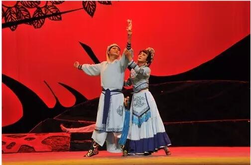 彝剧是新中国成立后诞生的新兴剧种,是在云南省楚雄彝族自治州丰富多彩的民间文学、音乐、舞蹈、绘画等传统艺术基础上逐渐发展并形成的少数民族剧种。彝剧音乐由民歌小调(如〔梅葛调〕〔曼莫若调〕〔过山调〕等)、舞曲、器乐曲(如“芦笙曲”“月琴曲”“唢呐曲”等)结合形成,称“山歌体”。表演采用“叠脚”等民族舞蹈的舞步、身段,具有浓郁的地方特点和民族色彩。彝剧贴近生活、贴近百姓,但不失高雅淳朴的气质,诙谐幽默且极富生活情趣,深受广大人民群众的喜爱。代表剧目有彝剧小戏《半夜羊叫》《掌火人》《双叩门》《喝三秒》等。2008年,彝剧被列入第二批国家级非物质文化遗产保护名录。