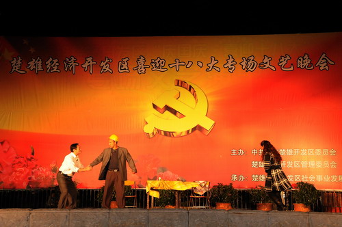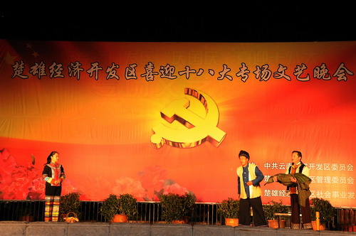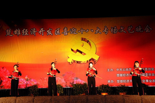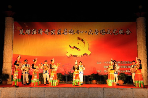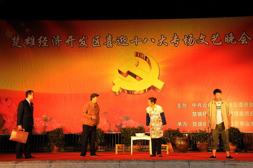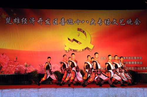 为迎接党的十八大胜利召开,营造良好氛围,开发区社会事业发展局与楚雄州民族艺术剧院联合,在开发区举行“喜迎十八大 文艺进社区”系列演出活动,于2012年11月3日、11月 4日晚在开发区市民广场举行了楚雄州民族艺术剧院民族乐团“云南省青年演员比赛”获奖演员专场音乐会、楚雄州民族艺术剧院滇剧团“喜迎十八大”小戏小品专场演出。
