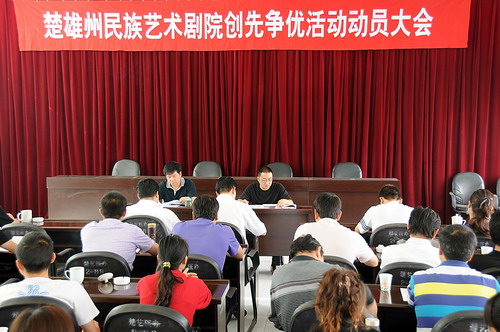 图二为 近日楚雄州民族艺术剧院召开创先争优活动动员大会