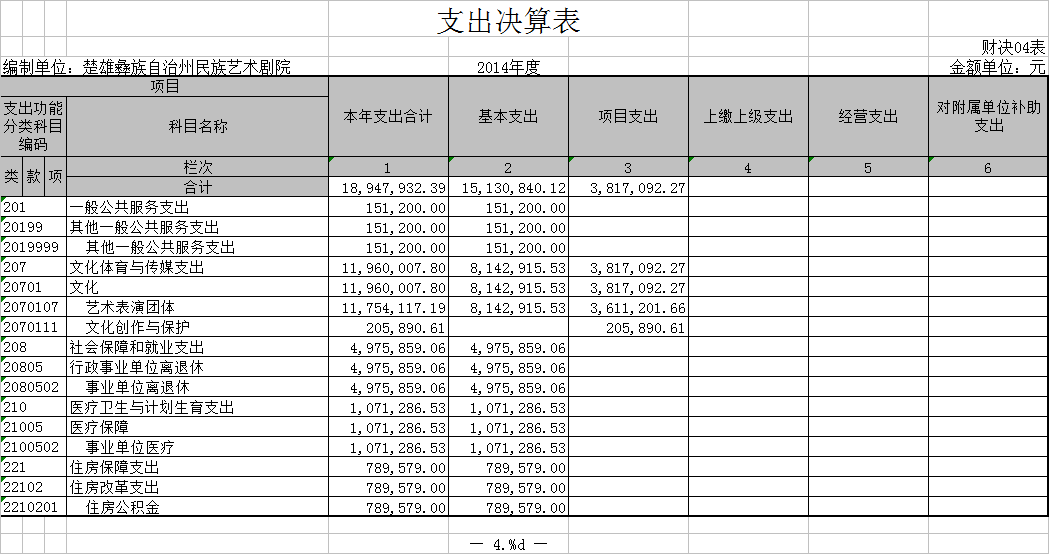 - 2015年度部门决算表楚雄州民族艺术剧院2015年三公经费表 ...