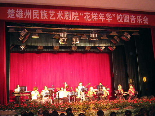 图为演出现场 五月,阳光灿烂、鲜花盛开。楚雄州民族艺术剧院民族乐团的“花样年华”校园音乐会于本月二十日晚在楚雄师范学院拉开楚雄城区院校巡演的帷幕。 此台音乐会精选了当代乐坛久盛不衰的经典曲目,由电声乐队为主奏,配合民乐、声乐、西洋乐等多种组合形式...